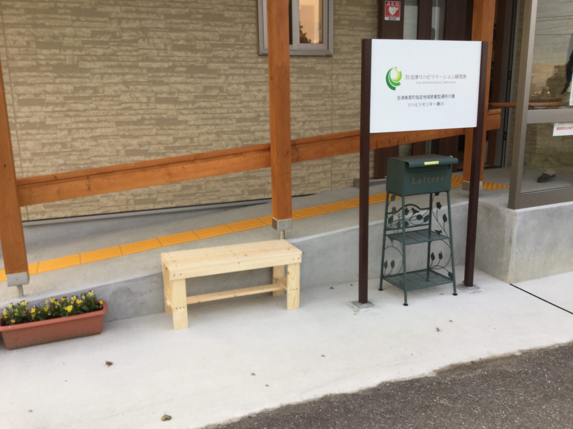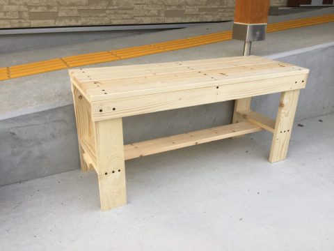 ベンチが完成しました(木工プログラム) 2017年11月4日 以前送迎車輌のステップ台を製作頂いた利用者さんに、今度は屋外用のベンチを製作して頂きました。前回同様設計がしっかりしていましたので、組み立て始めると非常にスムーズに作業が進行しました。ご近所の方など、ここで気軽に一休みなさって下さい。