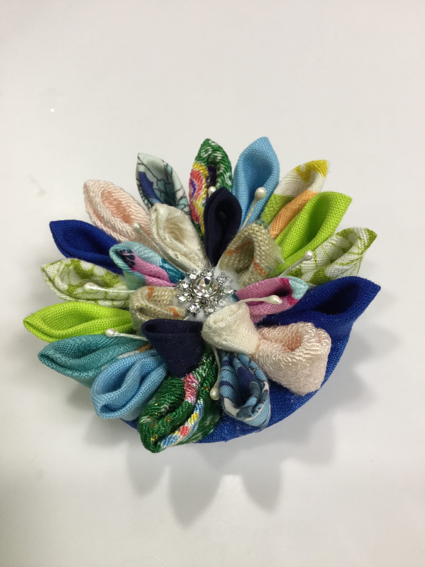 つまみ細工教室 2017年12月17日 今日は新鶴地区でつまみ細工教室でした。台紙に布をくるみ、そこに折りたたんで三角にくっつけた布を貼り付けていくものです。写真は、完成したブローチです。来週から事業所でも皆さんに紹介したいと思います。