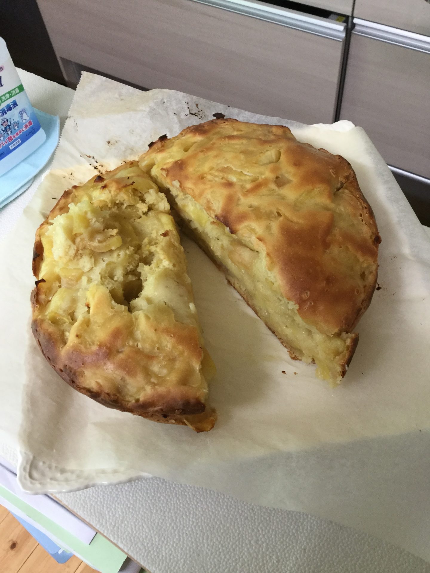 毎週金曜日の午後はおやつ作りを行っています。今回は頂いたリンゴでのアップルケーキ作り。ホットケーキミックスとリンゴで、むっちりとしたケーキができました。炊飯器でできるというわけでしたが、焼き具合がいまひとつだったので、結局オーブンで仕上げました。