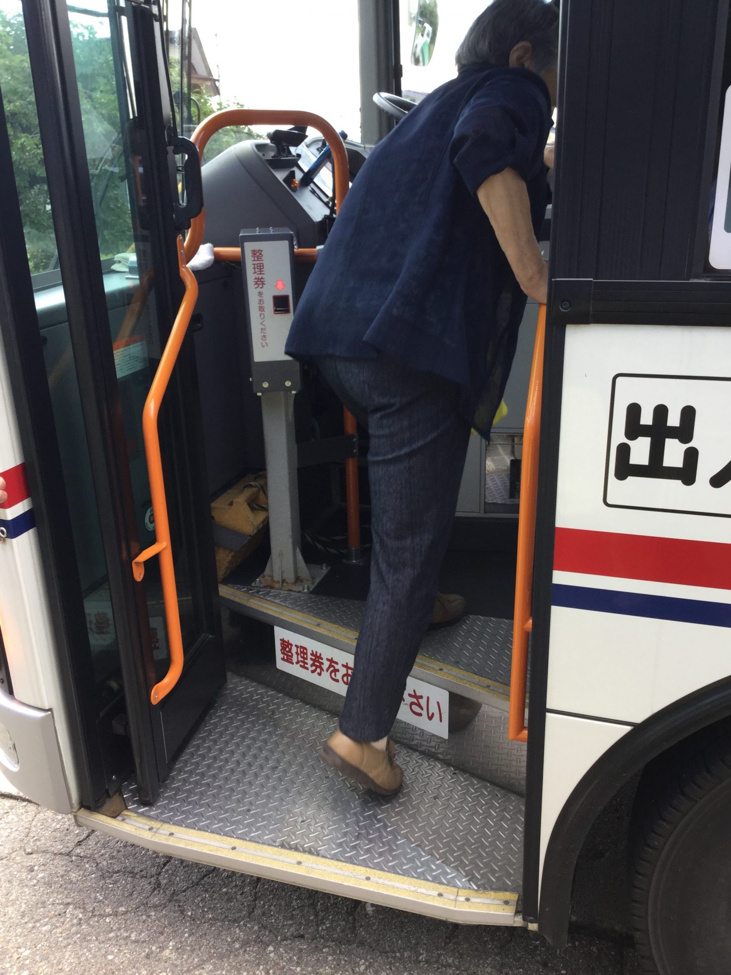膝の運動器疾患を抱える利用者Aさんのケアプランに位置付けられていた、「バスを利用しての隣市への外出」という目標について、当事業所では①筋力強化、②段差昇降練習、③バスでの外出をプログラムに組んでいました。会津バスさんのご協力のもと、会津美里町を走っているバスでは、どの路線の何時にどのタイプがあるかを調査させてもらい、その環境を想定した練習を継続してきました。まず、バスの種類ですが、①ワンステップ、②ツーステップ、③ノンステップ、の3種類がありました。段差の高さは、最高が①ワンステップの36cmで、手すりを利用してこの高さを昇降できることが、バスでの外出には必要なスキルでした。これに乗り降りできれば、会津バスさんの路線バス利用においては、どれを利用しても対応できることになり、路線・時間を気にせず外出が可能になると想定しました。掲載させてもらった写真は、ワンステップバスを使って町内中心地へ外出プログラムを実施した際のものです。ご本人も、「何年かぶりに乗れた」と嬉しそうにお話されていました。今後は、「バスを利用しての隣市への外出」というケアプランの目標達成に向けて、皆さんと一緒に頑張っていきたいと思います。Aさん、おめでとうございます。また、準備段階から大変ご協力頂きました、会津バスさんにも御礼申し上げます。