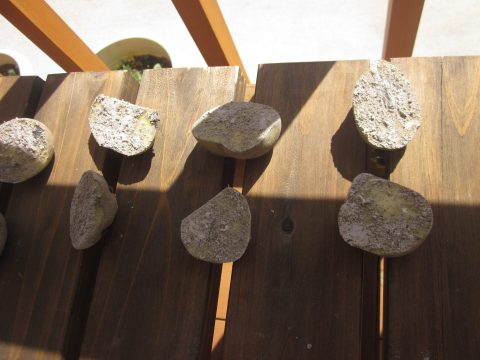 大変暑い一日でした。某ケアマネジャーさんから頂いた「アク」をつけて、じゃがいもの植え付けを終えました。種イモの断面に灰をつけることで、腐りにくくなるそうです。