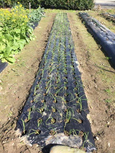 昨年秋に植えた玉ねぎに、追肥をしました。利用者さんに手伝ってもらいました。マルチの穴の中に、ひとつひとつ丁寧に肥料を入れてくれました。昼食時間が過ぎてしまったのですが、「俺らだけ食ってこれに食わせねえわけにいかねえ。」と、最後まで丁寧に追肥して下さいました。美味しい玉ねぎができそうで楽しみです。